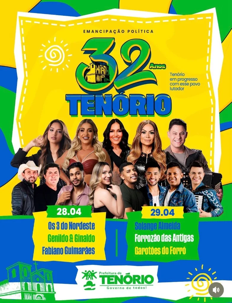 Festa de Emancipação de Tenório ocorre nos dias 28 e 29 de abril. Shows com Solange Almeida, Forrozão das Antigas e Os 3 do Nordeste.