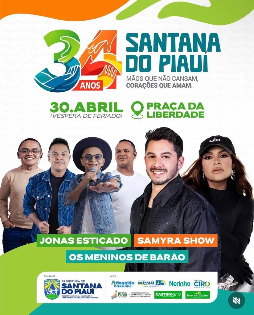 A cidade de Santana do Piauí se prepara para uma grande festa em comemoração aos seus 34 anos de emancipação política. A prefeitura municipal anunciou uma programação especial para o dia 30 de Abril, véspera de feriado do Dia do Trabalhador, transformando a Praça da Liberdade no palco de um evento inesquecível.