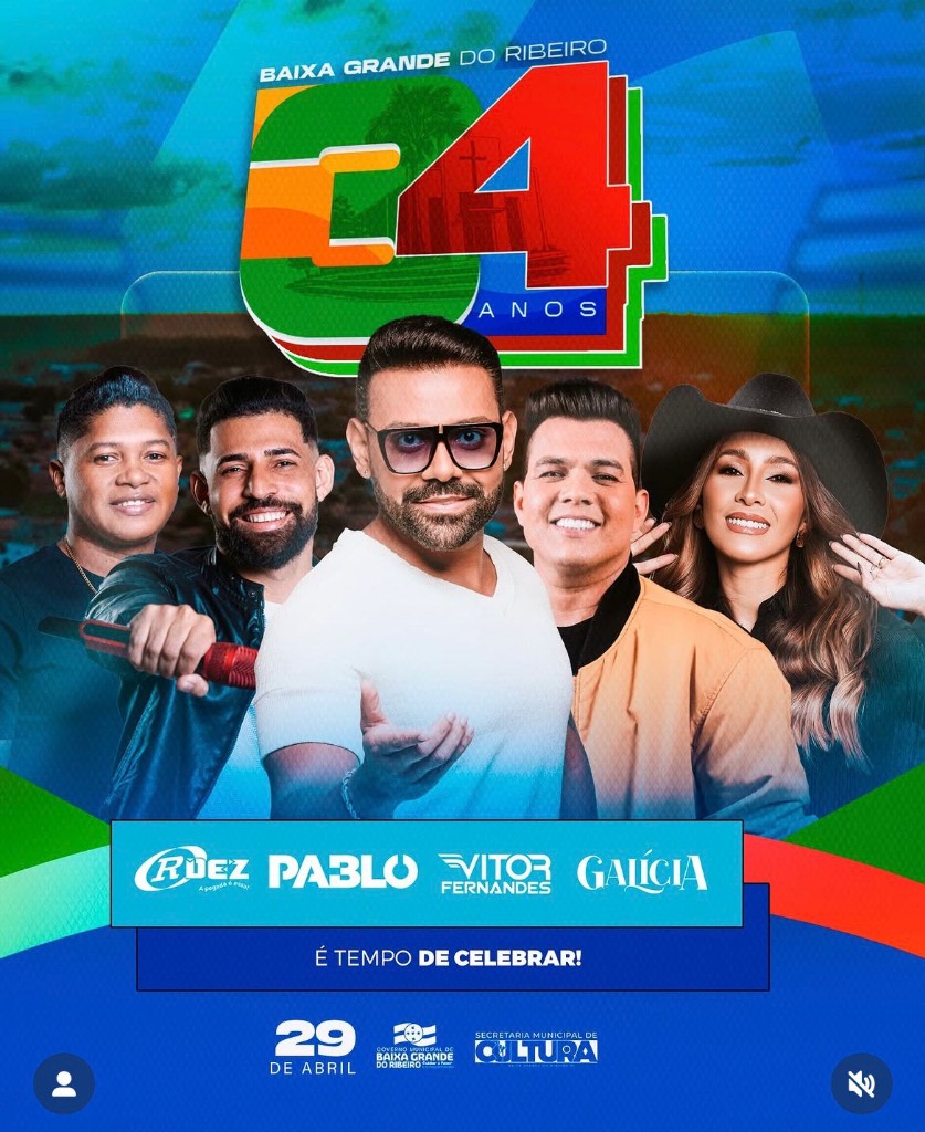 A festa de emancipação política acontece no dia 29 de abril com Ruez, Pablo, Vitor Fernandes e Galicia em Baixa Grande do Ribeiro - PI.
