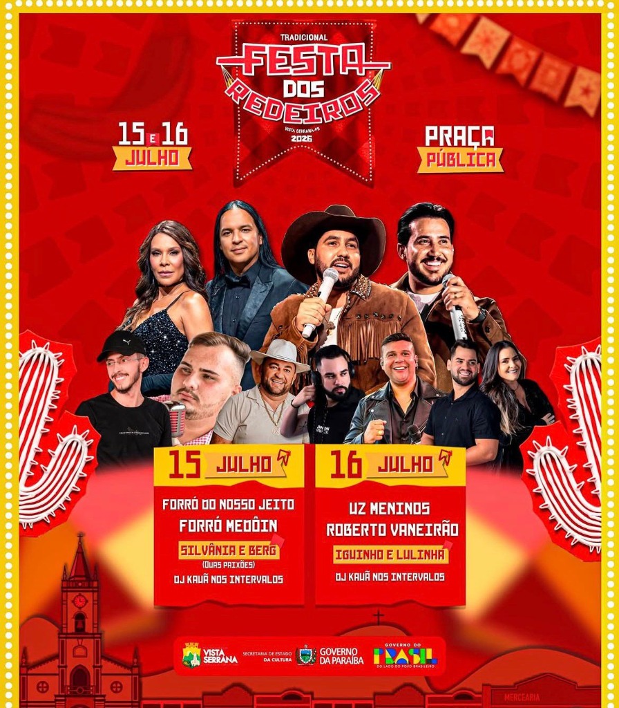 Fique atento aos horários e chegue cedo para garantir o seu lugar e evitar trânsito. A festa em Vista Serrana (PB) pelo Festa dos Redeiros 2026 vai parar a região metropolitana inteira!
