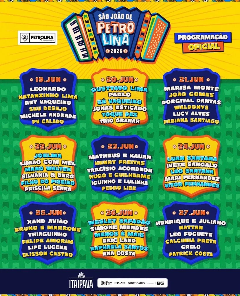 Considerado um dos maiores festejos juninos do Brasil, o São João de Petrolina 2026 cravou a sua majestade com a divulgação daquela que promete ser a grade de shows mais valiosa da sua história. Com artistas do mais alto escalão nacional, o Pátio de Eventos Ana das Carrancas sediará 9 incríveis noites de muita música e ferveção para todos os gostos.